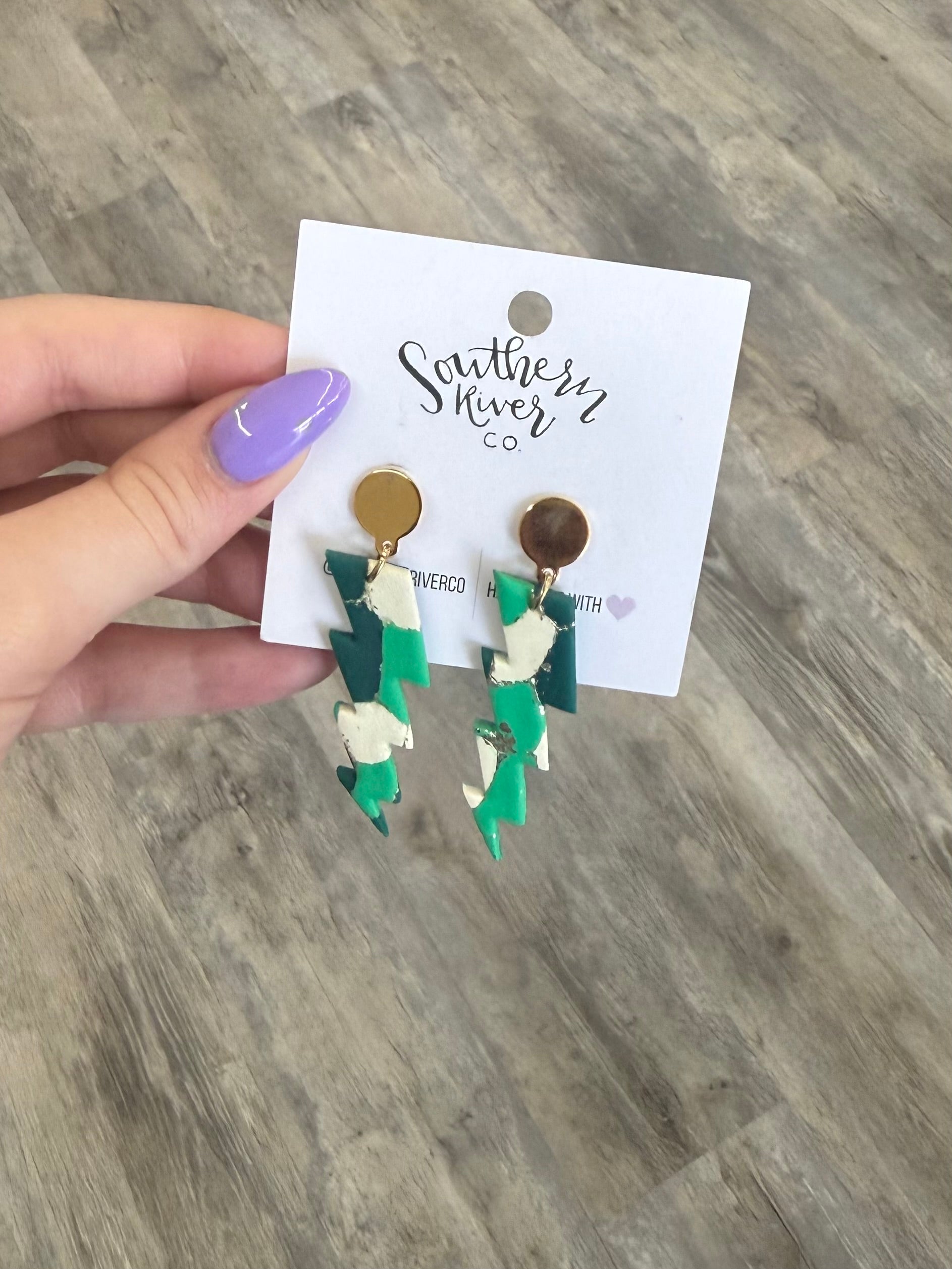 Green Abstract Lightning Bolt Earrings