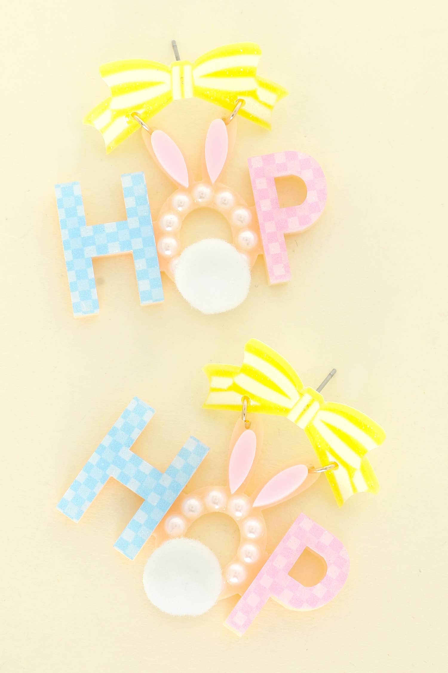 Expertly crafted with high-quality acetate and cotton, these Hop Letter Easter Earrings are the perfect accessory for the spring season. The unique design and lightweight materials make them comfortable to wear, while adding a touch of whimsy to any outfit. An ideal way to celebrate the holiday with style.